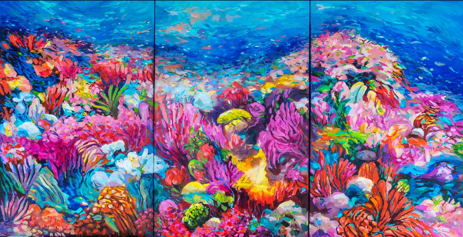 Coral Reef Triptych I&II 90inX48in oil on canvas